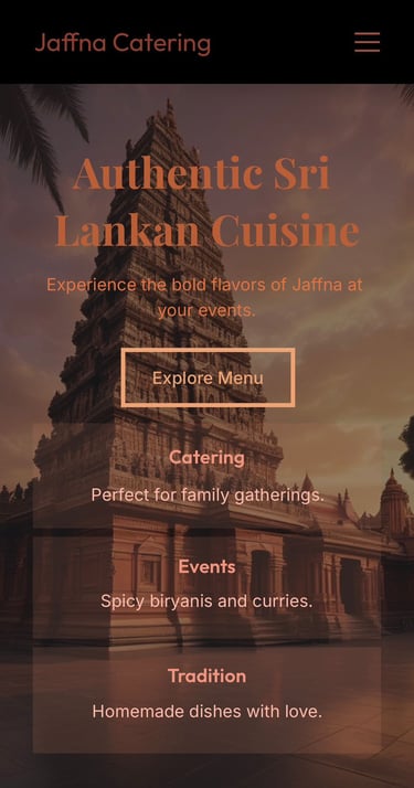 A clean, modern catering website with menu, gallery, and mobile-friendly design.